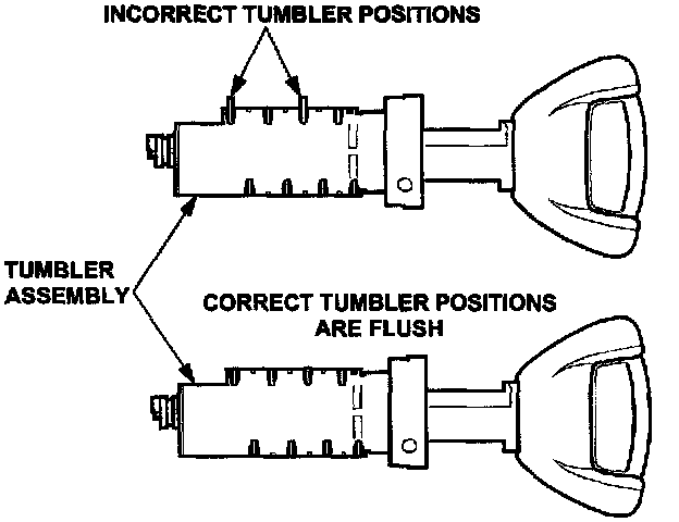 If key cannot be inserted completely, it will be necessary to depress the exposed tumblers to remove the tumbler assembly.