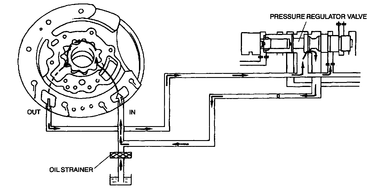 - When the inner rotor in the oil pump rotates, the ATF is drawn to the oil pump. The discharge amount is proportional to the rotating speed of the torque converter.
