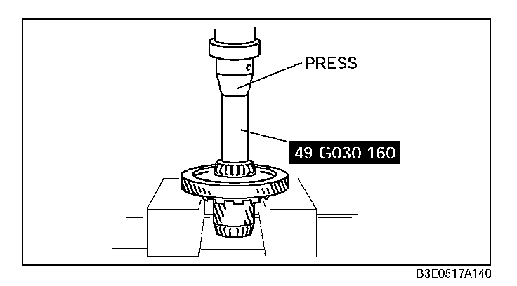 Remove the bearing (secondary gear side) from the output gear using the SST.