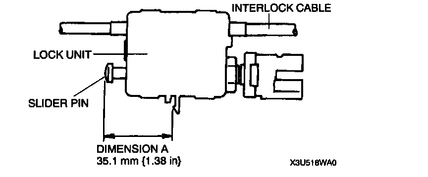 2. It the slider pin protrusion is as specified below (dimension A), verify that the interlock cable moves freely in the lock unit.