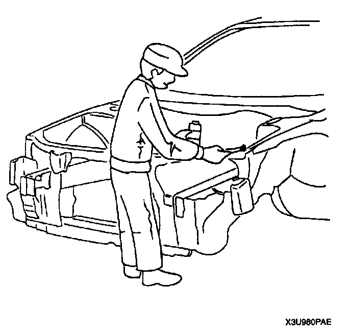 - For treatment against corrosion, remove the paint grease, and other material from the portion of new part and body to be welded, and apply weld-through primer.