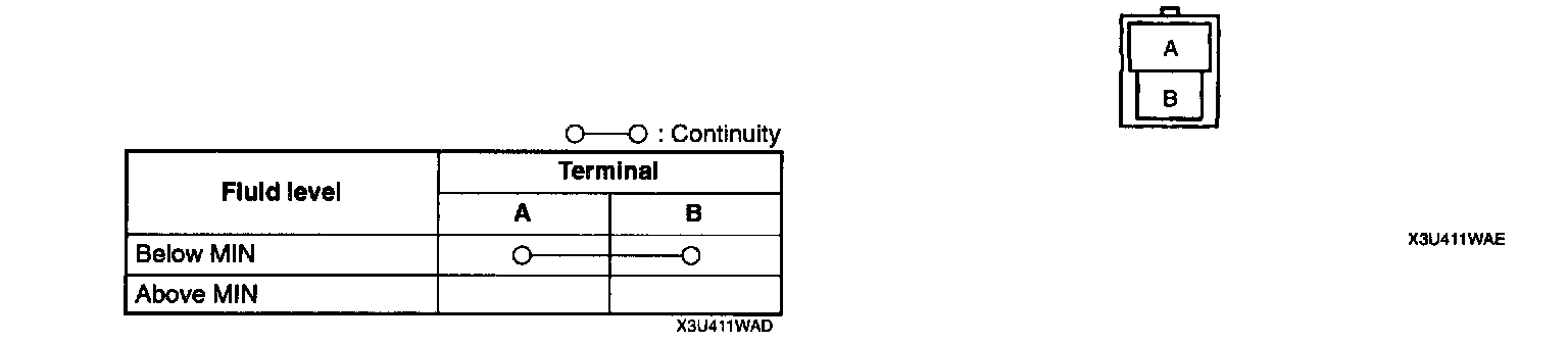 3. Starting with the fluid level above MIN, verify that there is no continuity.