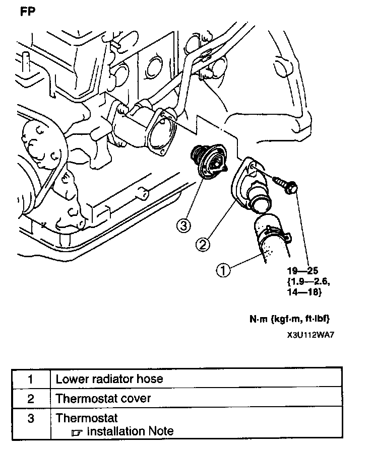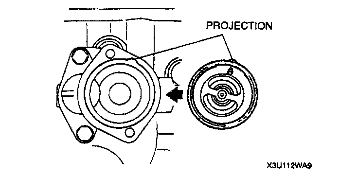 1. Install the thermostat into the thermostat case with the jiggle pin and projection at the top.