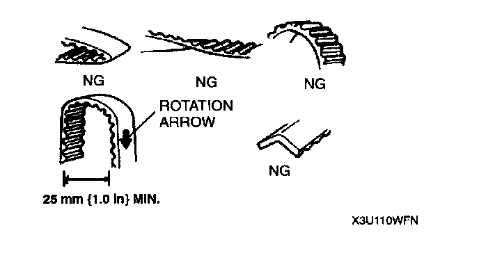- Mark the timing belt rotation on the belt for proper reinstallation.