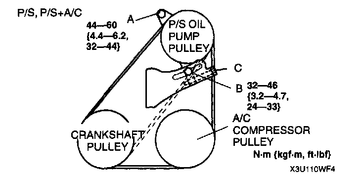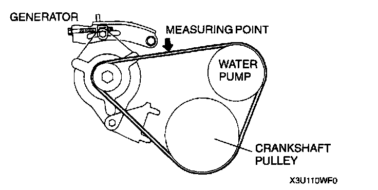 - When the belt is replaced with a new one or the belt has been on a running engine for less than 5 minutes, adjust deflection or tension to "New" specification.