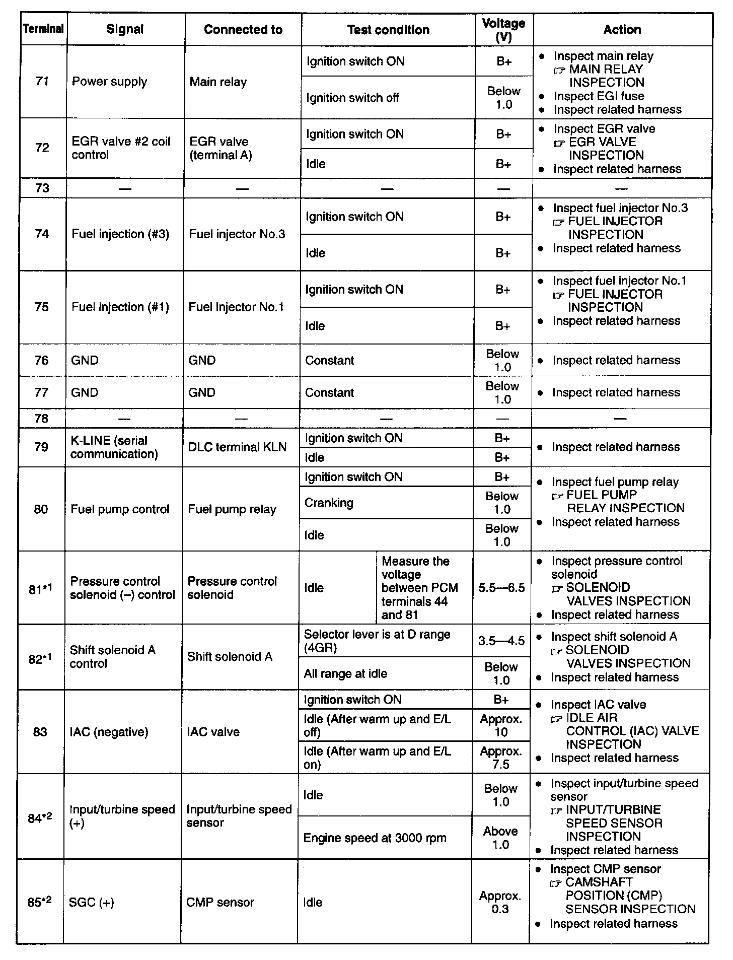 Pinout Values and Diagnostic Parameters