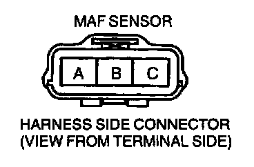 1. Visually inspect for damage, cracks, terminal bends and terminal rust on the MAF sensor.