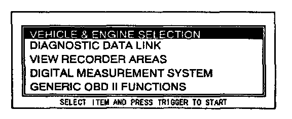 2. Move the cursor to VEHICLE & ENGINE SELECTION. Press the trigger key to enter this selection.