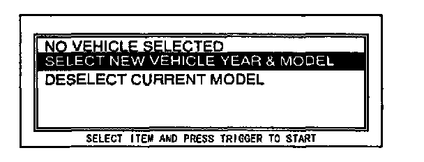 3. Move the cursor to SELECT NEW VEHICLE YEAR & MODEL. Press the trigger key to enter this selection.