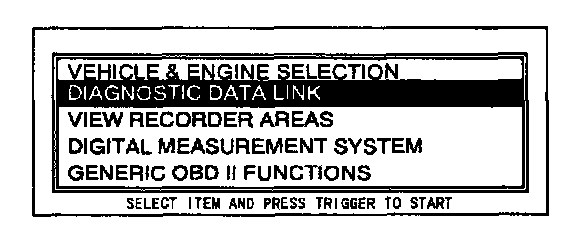 7. Move the cursor to DIAGNOSTIC DATA LINK on the main menu screen. Press the trigger key to enter into menu system diagnostics.