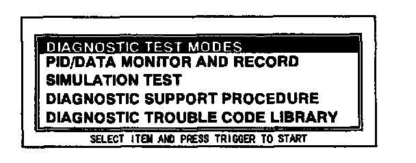 9. Move the cursor to DIAGNOSTIC TEST MODES. Press the trigger key to enter this selection.