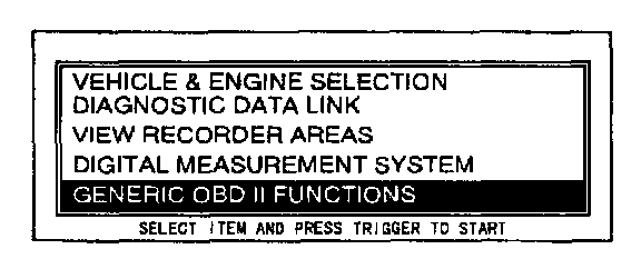 2. Move the cursor to GENERIC OBD II FUNCTIONS. Press the trigger key to enter this selection.