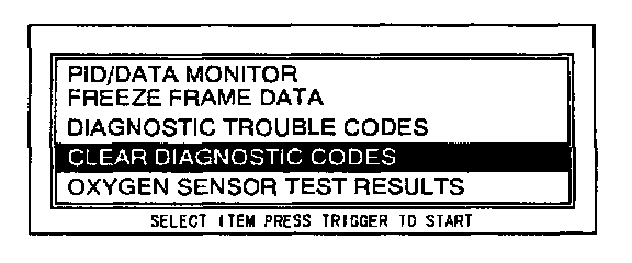 4. Move the cursor to CLEAR DIAGNOSTIC CODES. Press trigger key to enter this selection.