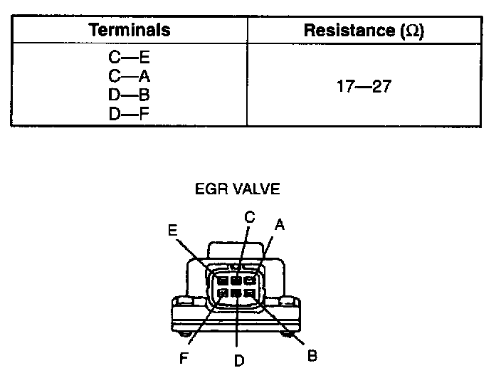 - EGR valve connector terminal F and PCM connector terminal 56 to Ground