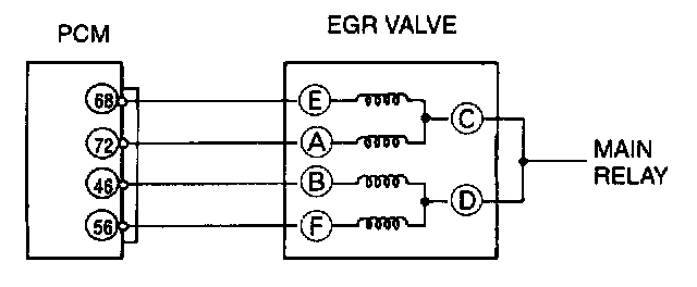 - Ground circuit (EGR valve connector terminal E and PCM connector terminal 68)