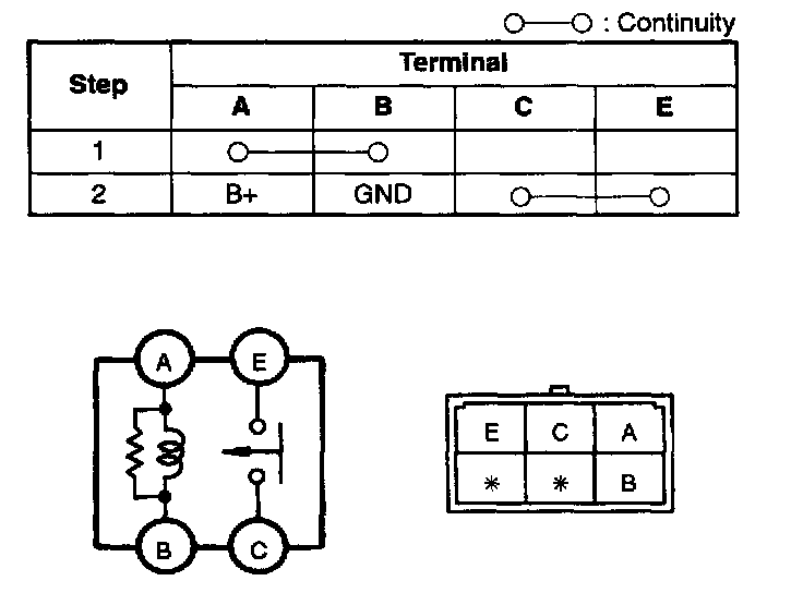 3. Inspect for continuity between the fuel pump relay terminals using an ohmmeter.