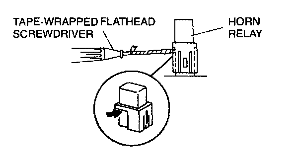 2. Push a tape-wrapped flathead screwdriver downward to remove the horn relay.