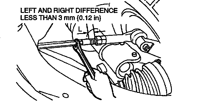 NOTE: Turning both tie rods one complete turn changes toe-in by about 6 mm (0.24 inch) (0°36').