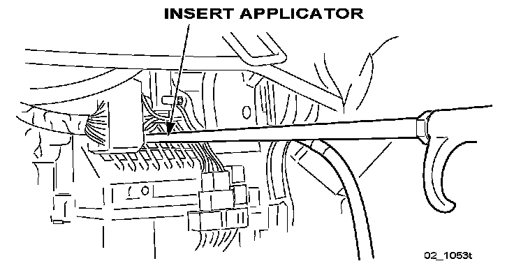 4. Insert the applicator in the grille of the the recirculation door. Point the nozzle tip downwards and towards center (approximately the 7 o'clock position).