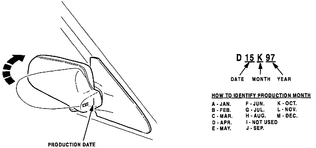 ^ The part number has not changed. Be sure to confirm that the mirror production date is after October 14, 1997 as shown in the illustration.