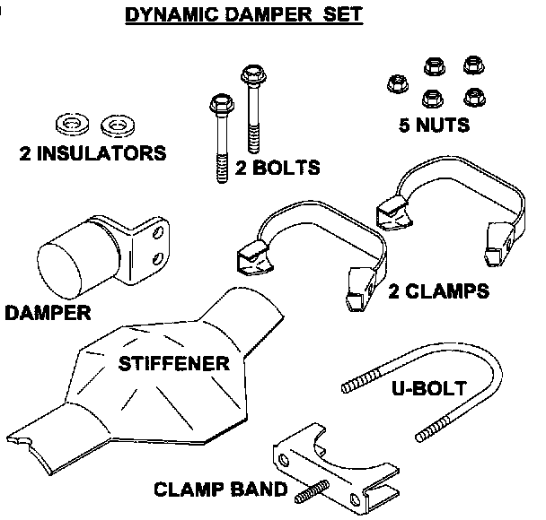 B. Assemble dynamic damper onto stud of clamp band with the two insulators positioned between damper and band as shown in illustration. Tighten nut.