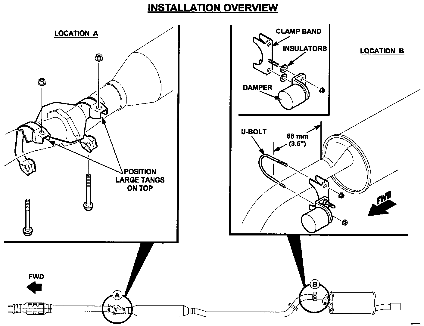 3. Install damper at LOCATION B as shown. Again. refer to illustration.