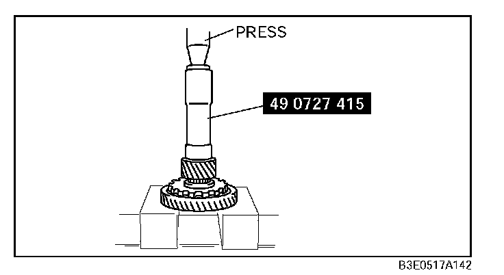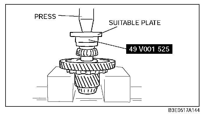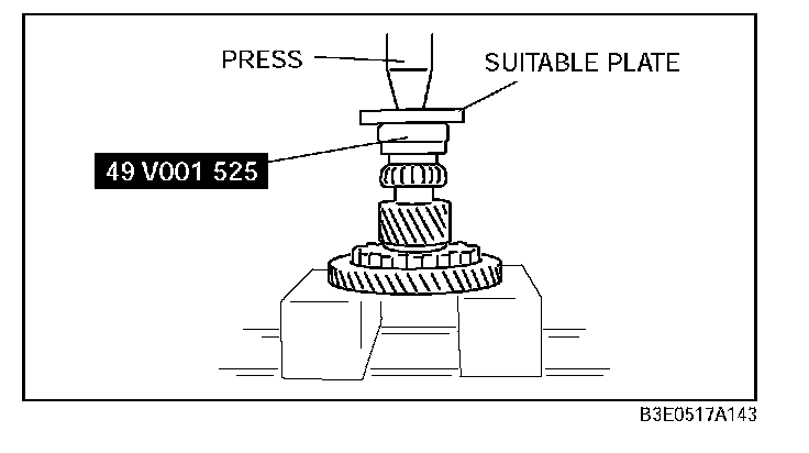 3. Install the bearing (secondary gear side) to the output gear using the SST and suitable plate.