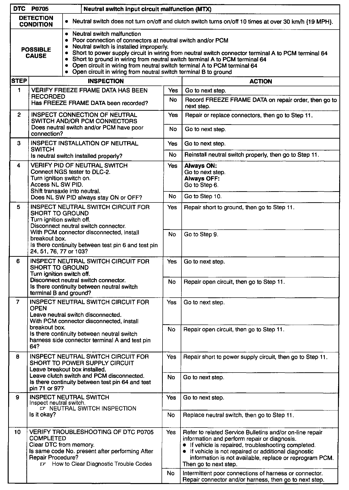 P0705 (Step 1 Thru 10):