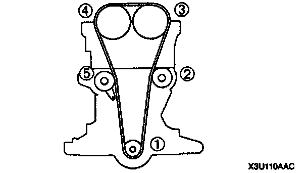 - If the timing belt deflection is not correct, remove the timing belt and repeat from Timing belt assembly note Step 1.