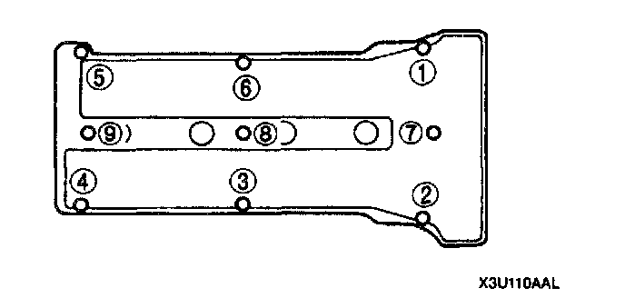 3. Install the cylinder head cover bolts and tighten them a few turns in the order shown.