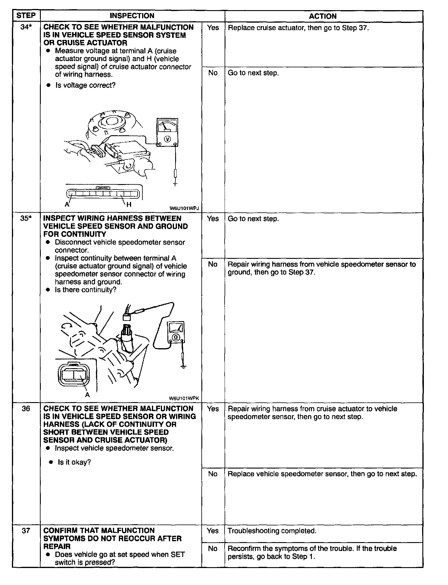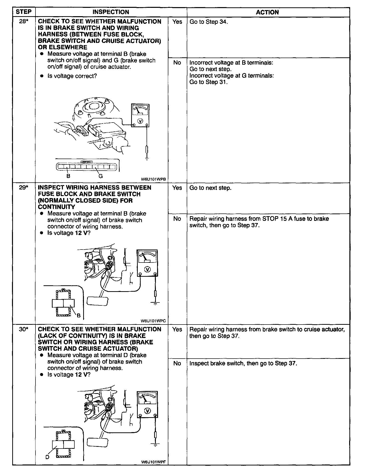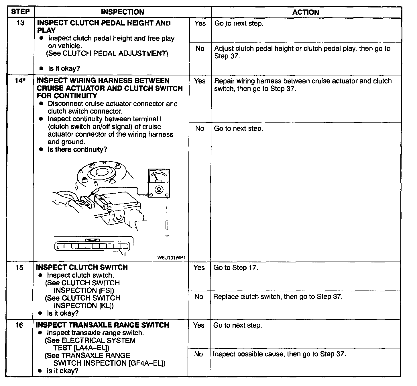 When performing an asterisked(*) troubleshooting inspection, shake the wiring harness and connectors while doing the inspection to discover whether poor contact points are the cause of any intermittent malfunctions. If there is a problem, check to make sure connectors, terminals and wiring harness are connected correctly and undamaged.