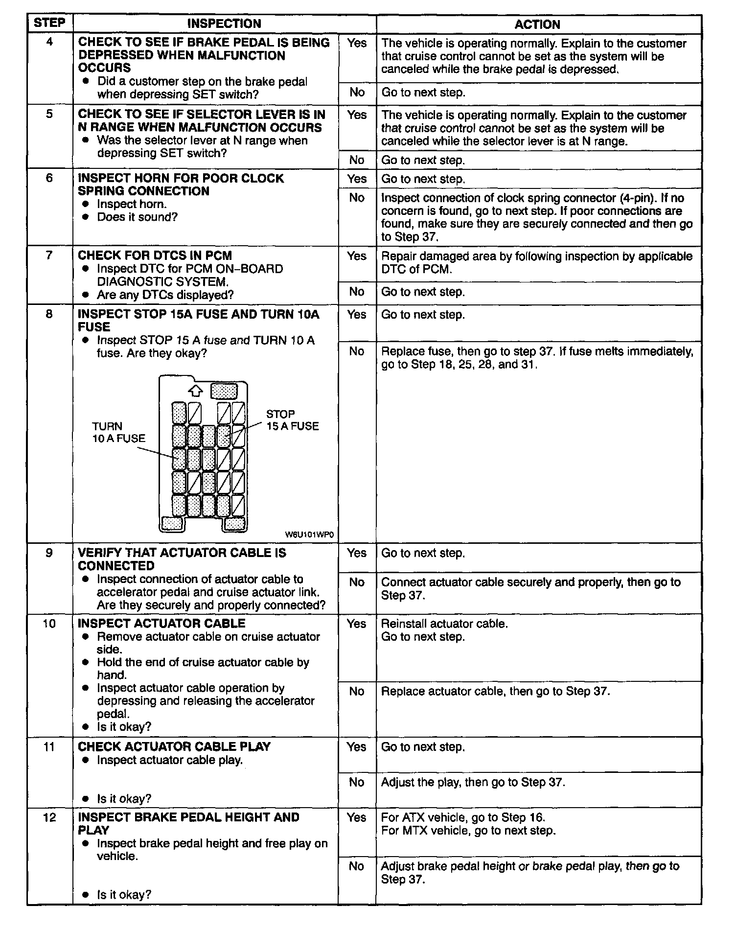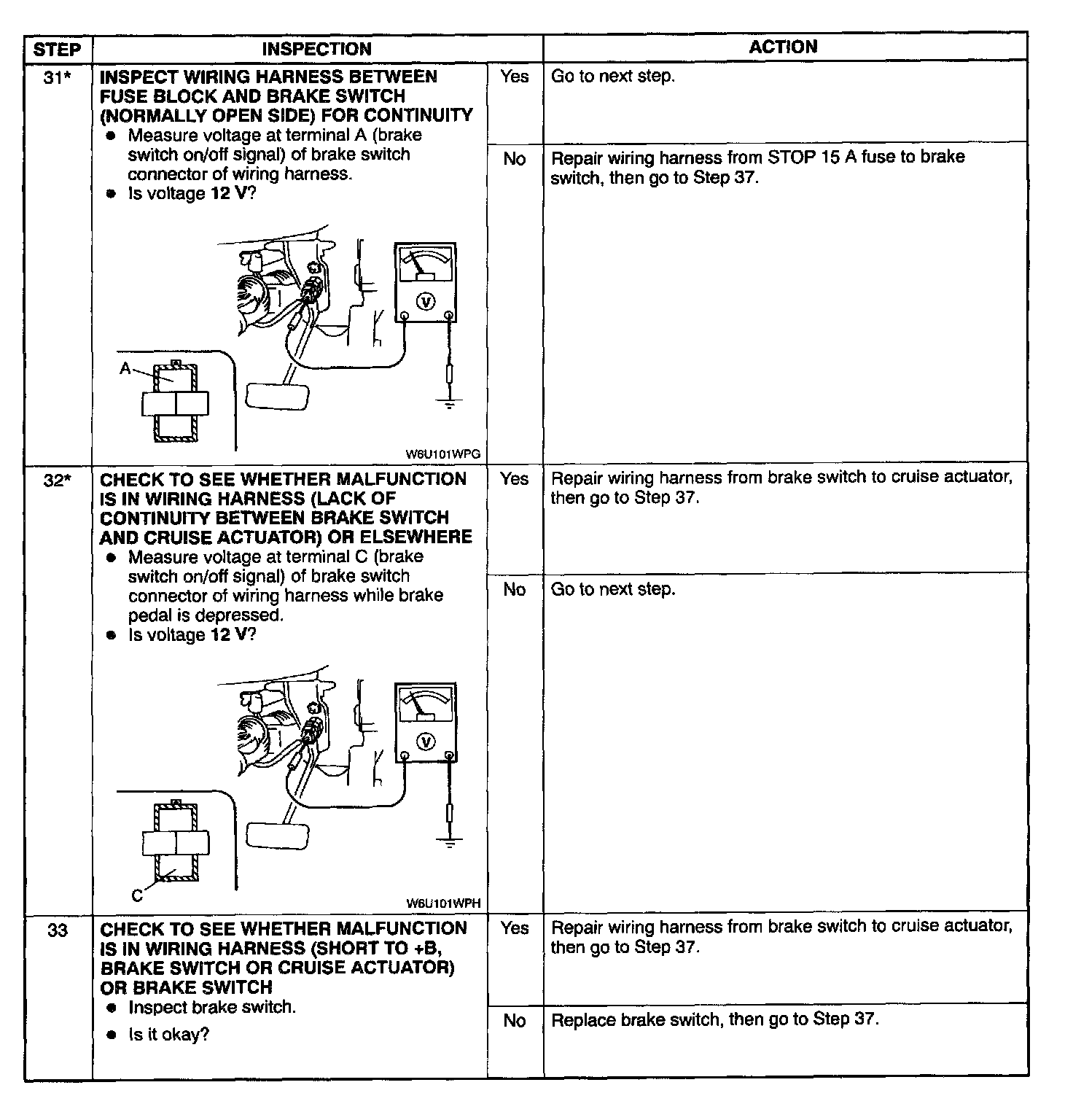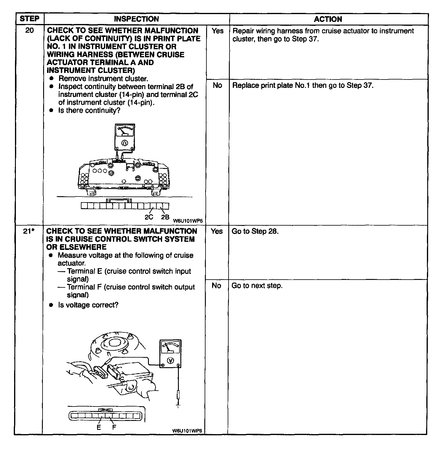 When performing an asterisked(*) troubleshooting inspection, shake the wiring harness and connectors while doing the inspection to discover whether poor contact points are the cause of any intermittent malfunctions. If there is a problem, check to make sure connectors, terminals and wiring harness are connected correctly and undamaged.