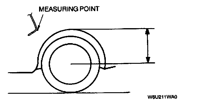 7. Measure the height from the center of the wheel to the fender brim. The difference between the left and right measurement must not exceed 10 mm (0.39 in).