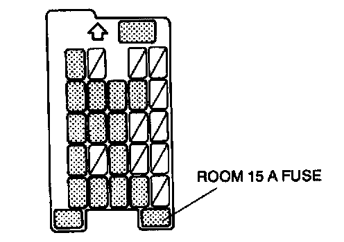 NOTE: When the ROOM fuse is burnt or removed, the malfunction indicator lamp illuminates. If the ROOM fuse is replaced or installed with the ignition switch at ON, the malfunction indicator lamp will continue to illuminate.1. Turn the ignition switch to LOCK.
