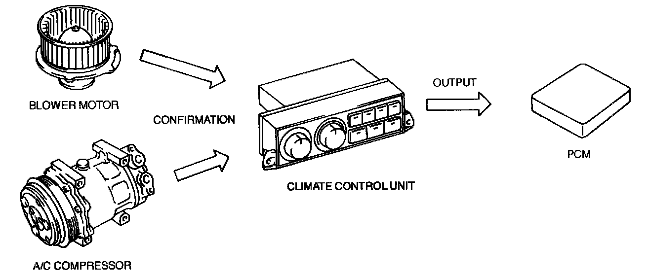 - The climate control unit sends A/C and electrical load idle-up signals to the PCM. Based on these signals, the PCM actuates the idle-up device.