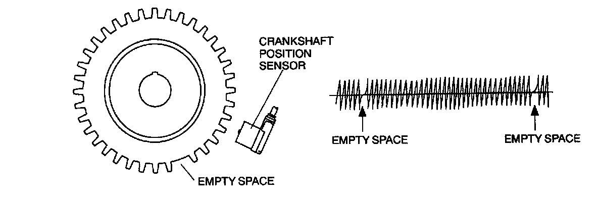 - The crankshaft pulley has a total of 35 teeth spaced 10 degrees apart with one empty space for a missing tooth.