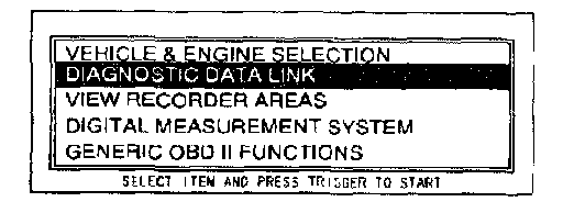 13. Move the cursor to DIAGNOSTIC DATA LINK on the main menu screen.