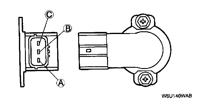 3. Using an ohmmeter, measure the resistance between throttle position sensor terminals A and C.