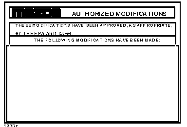 4. Place an "Authorized Modifications" label (P/N 9999-95-AMDC-97) with the new calibration information near the Emission Control Information Label located on the hood or in the engine compartment.