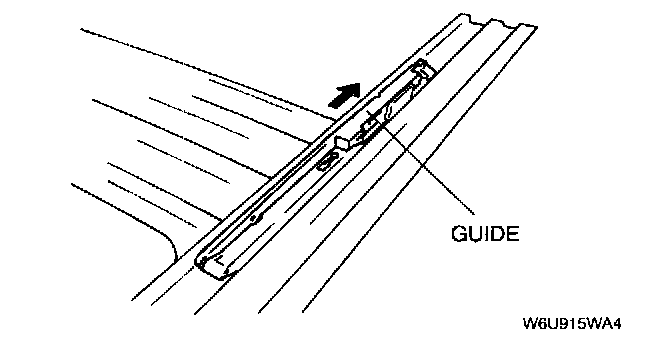 4. Install the guide to the sunroof frame by sliding it forward until reaches to the end of rail.