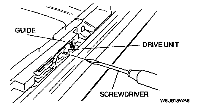 5. Adjust the drive unit, and insert an approximately 3.0 mm (0.12 in} diameter screwdriver or equivalent tool to align the drive unit with the guide.