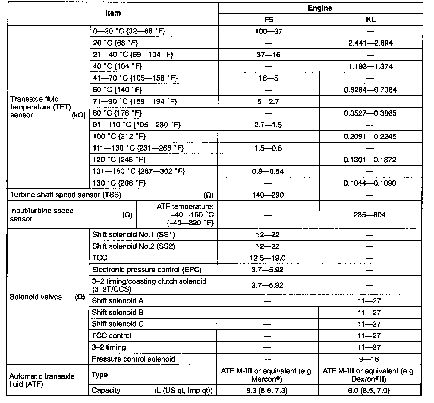 TRANSMISSION/TRANSAXLE TECHNICAL DATA