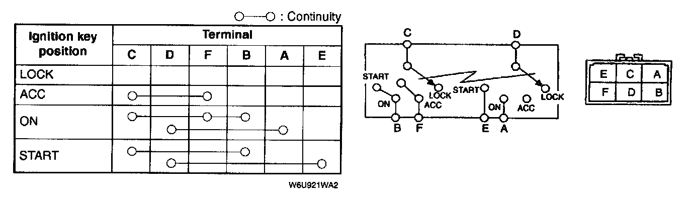 4. Check for continuity between the ignition switch terminals by using an ohmmeter.