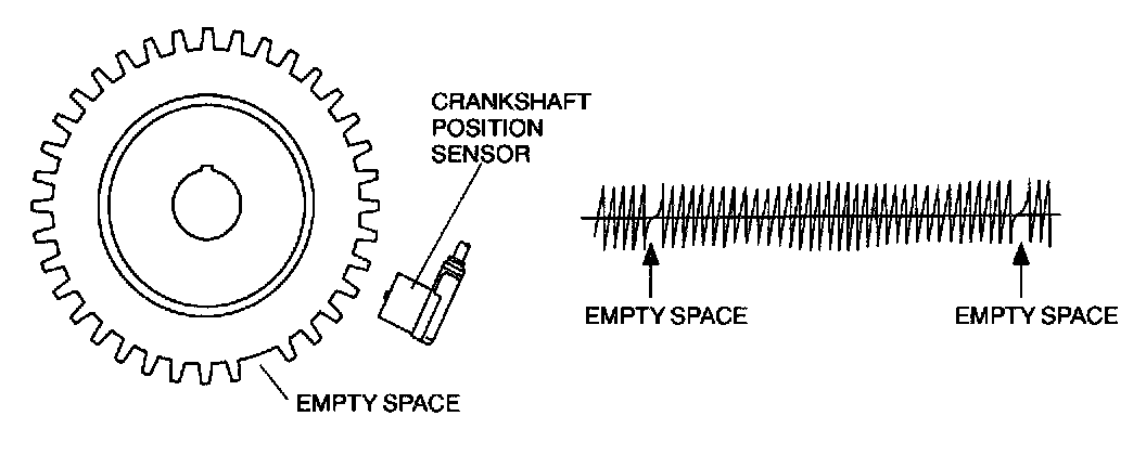 - The crankshaft pulley has a total of 35 teeth spaced 10 degrees apart with one empty space for a missing tooth.