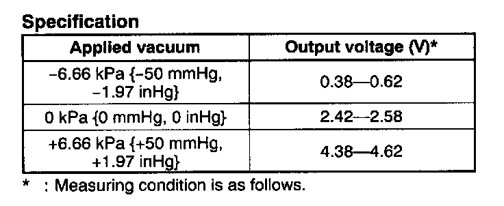 NOTE: The following vacuum values are indicated by relative pressure from atmospheric pressure.1. Disconnect the PCM connector.