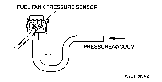 5. Apply pressure then vacuum to the fuel tank pressure sensor according to the following procedure.