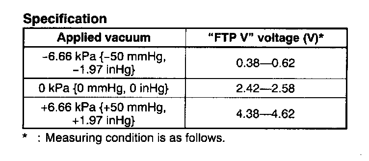 - Fuel tank pressure sensor terminal A voltage: Ground (Below 1.0 V)