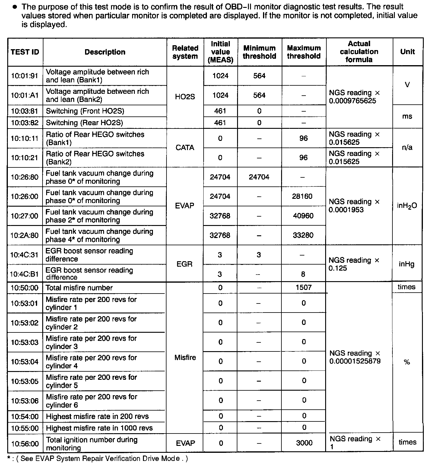 Diagnostic Monitoring Test Results