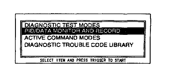 5. Connect the SSTs (NGS tester) to the data link connector and select the "PID/DATA MONITOR AND RECORD" function and press TRIGGER.