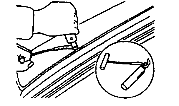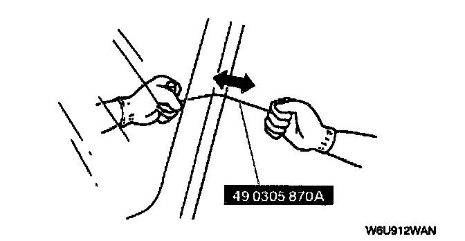 - For the areas of sealant that are difficult to cut, use a piano wire and follow the procedures under "Reusing Rear Window Glass".